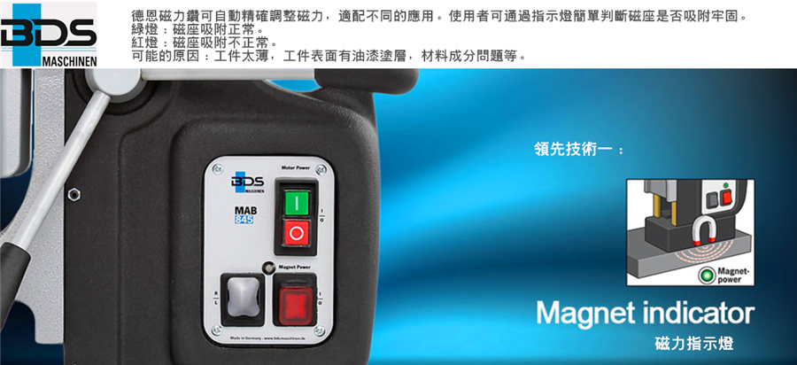 介紹:我們的輕型磁力鉆孔機MAB 100K的下一代型號現在配有KEYLESS鉆夾頭。無鑰匙鉆夾頭是一種快速簡便的方法,可將環形刀具連接到Weldon刀桿上,無需任何螺釘。輕巧的MAB 100K磁力鉆床僅為9.9 Kg。重量輕,配有19毫米Weldon無鑰匙心軸,完全內部布線等等。輕型磁力鉆床MAB 100K的優勢在于它是一個理想的機器,可以在偏遠的位置,塔架,橋梁,PEB結構等進行鉆孔,因為它的重量最輕。 MAB 100K磁力鉆床在德國制造,并提供國際保修。